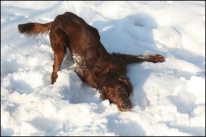 Ja, ja der Askaban, Die VJP fing so gut an: Suche 11, Führigkeit 11, Nase 10, Vorstehen 10 und dann war da die Sache mit der Spur. Der Fasan war ihm dann doch lieber als die Hasenspur. VJP - 62 Punkte und JuS bestanden am 14. April. Am 28. April konnte Askaban zeigen was in ihm steckt: er bestand das Derby (DK) im I. Preis. Askaban ist im Feld schon eine Granate - was immer wieder auch von erfahrenen Setterleuten bestätigt wurde. Und obwohl eigentlich keine Zeit zum trainieren blieb - er war 1 Monat lang schwer am Knie verletzt - zeigte er hervoragende Ergebnisse auf den Anlagenprüfungen. |