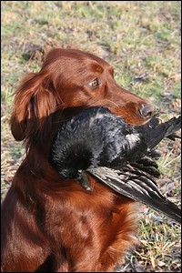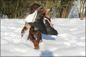 trotzdem immer wieder ins Wasser. Täglich sind die Kleinen mit mir bis zu 3 Stunden im Revier und sind schon mit fast allem vertraut Schon von Welpenalter an und seit ich mit ihnen raus ins Revier gehe sind Brombeerhecken kein Hindernis. An jegliche Art von Wild wid prompt drangegangen. Ob Kanin, Ente, Taube, Fasan, Fuchs oder Reh. Alles ist toll und wird bearbeitet, rumgezupft, getragen (was möglich ist zu tragen). Bei den Verbliebenen wurde mit dem Apportieren angefangen. Mit Geduld, dem Alter entsprechend, muss ich wirklich sagen (und ich hab aufgrund meiner Hundeausbildertätigkeit wirklich Ahnung) sind die Kleinen äußerst pfiffig und lernen ungewöhnlich schnell. Es macht wirklich sehr viel Spaß mit den Kleinen zu arbeiten – sie machen es einem leicht. |